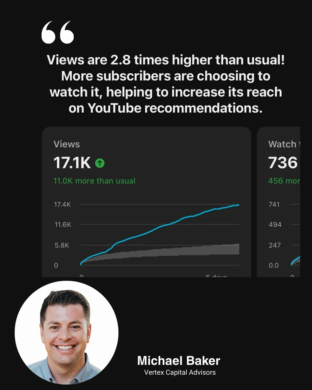 Most members start seeing improvements in clarity, video quality, and channel traction within the first 30 days. Some even notice audience growth after their very first uploads using our frameworks.