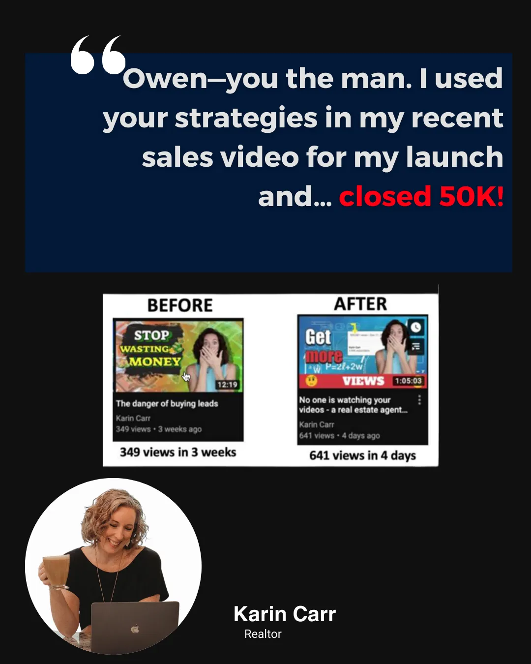 We stand behind our program with a 30-day money-back guarantee. If you attend the calls, use the playbooks, and don’t feel more confident and clear on your YouTube growth, we’ll refund you.